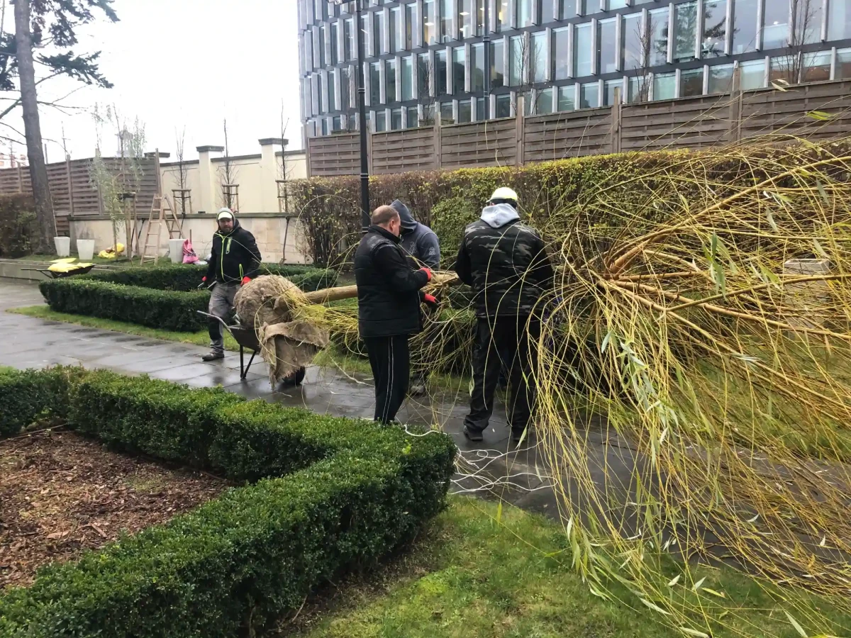 - Sadzenie drzew – sam etap sadzenia zależy od tego, z jakim gatunkiem mamy do czynienia, inaczej traktujemy – drzewa balotowane (drzewa z bryłą korzeniową owiniętą tkaniną), a jeszcze inaczej drzewa znajdujące się w pojemnikach.